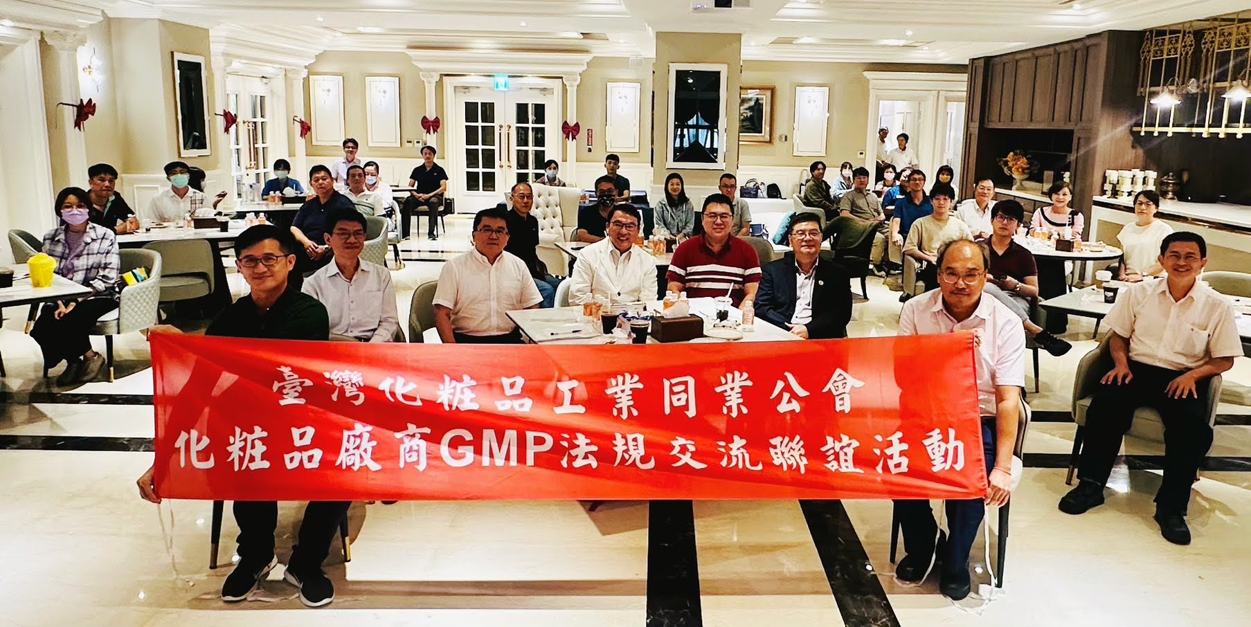 在化粧品廠商 GMP 法規交流活動中,公會幹部實際參與跨縣市的產業交流,透過現場討論與案例說明,協助廠商釐清 GMP 查核重點與實務操作方式,將抽象的制度要求轉化為可理解、可執行的現場指引。