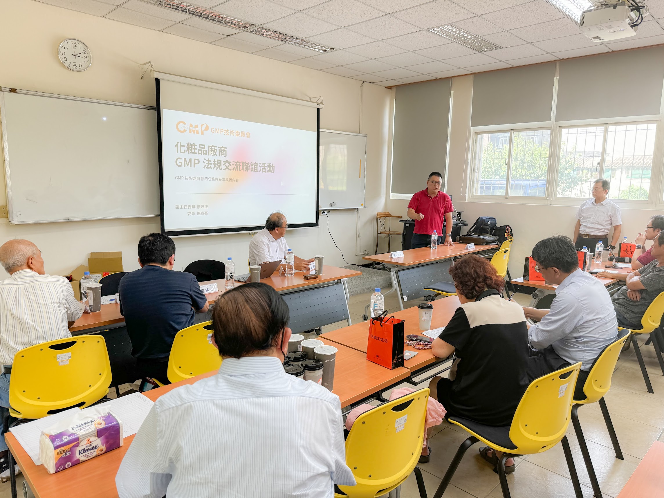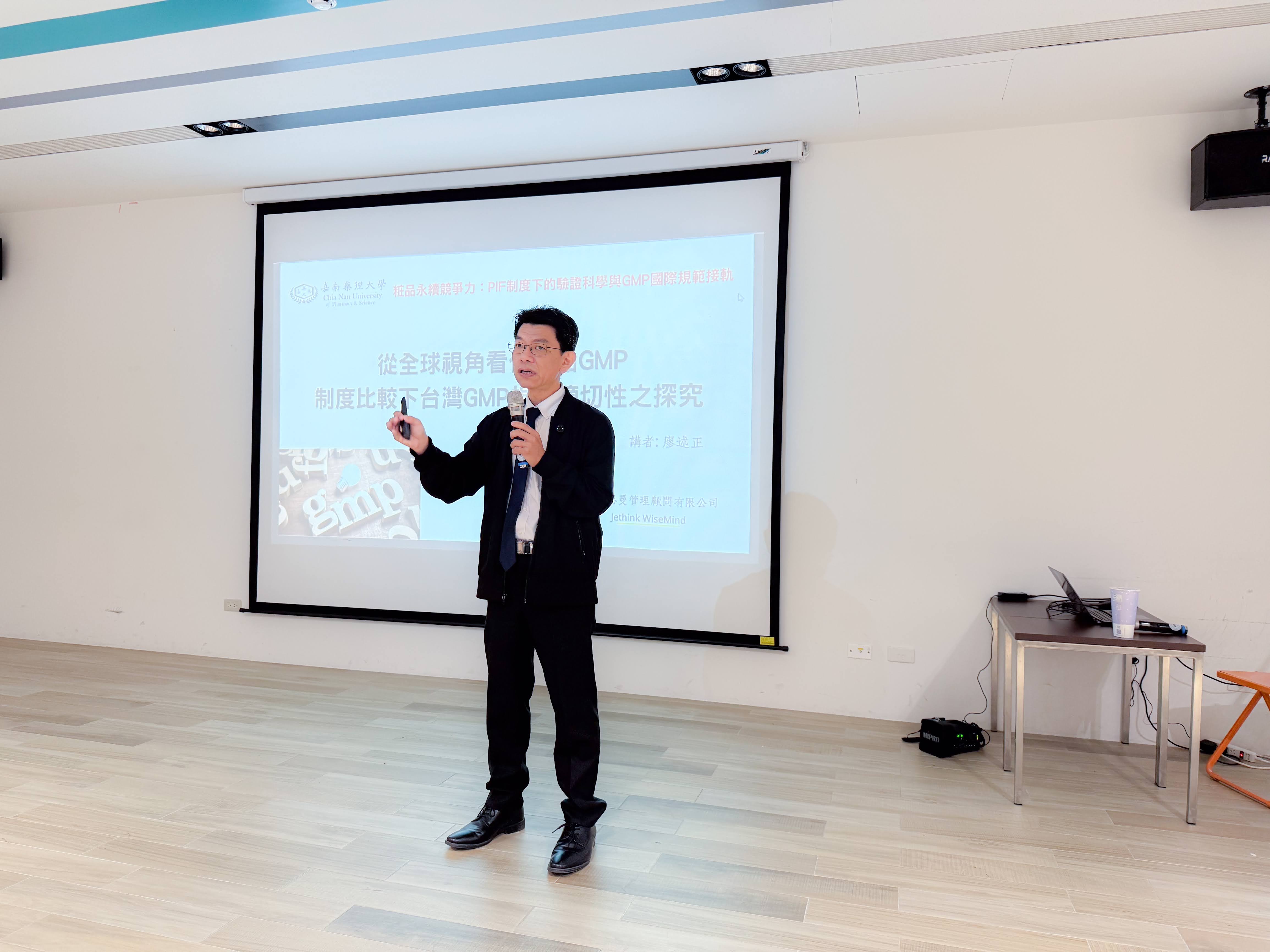 在嘉南藥理大學的產業交流現場,公會顧問受邀分享全球 GMP 制度架構的對照與觀點。臺中市化粧品公會成員親臨現場參與,並進行內容紀錄與錄影,作為後續制度理解與產業溝通的重要參考素材,協助將抽象規範轉化為企業可理解、可討論的實務語言。