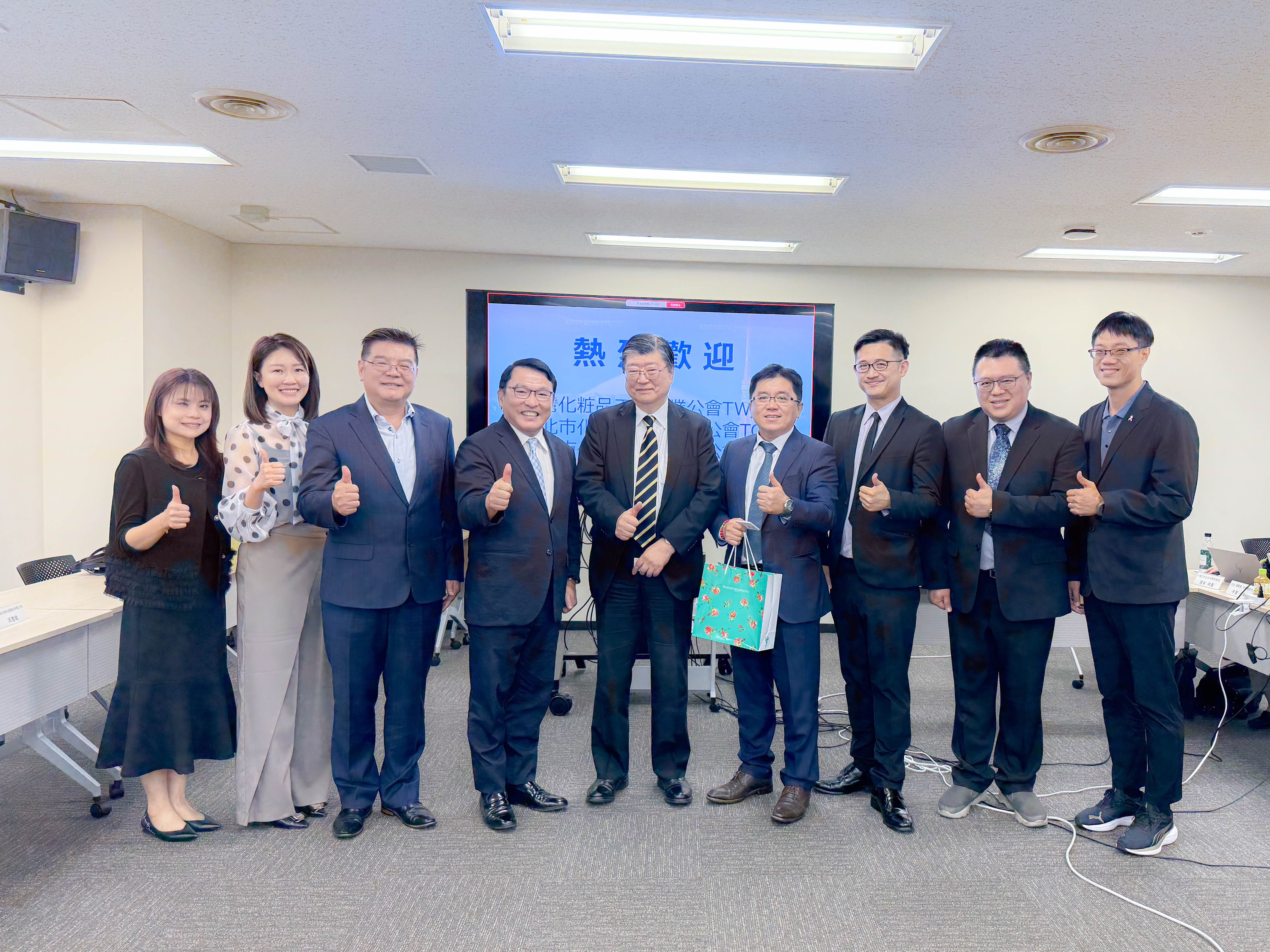 臺中市化粧品工業同業公會接待由理事長李琳媛率領之代表團,針對國際聯盟鏈結、教育培育、AI 應用與法規研討等推動模式進行深入交流。